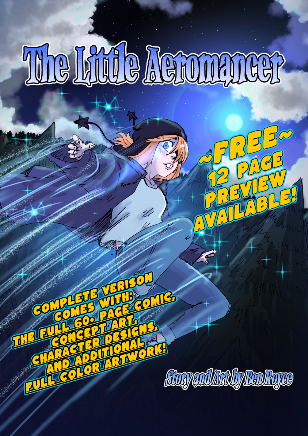 The preview version includes a short look at the story of The Little Aeromancer, the full version has the 60 page comic and additional art!